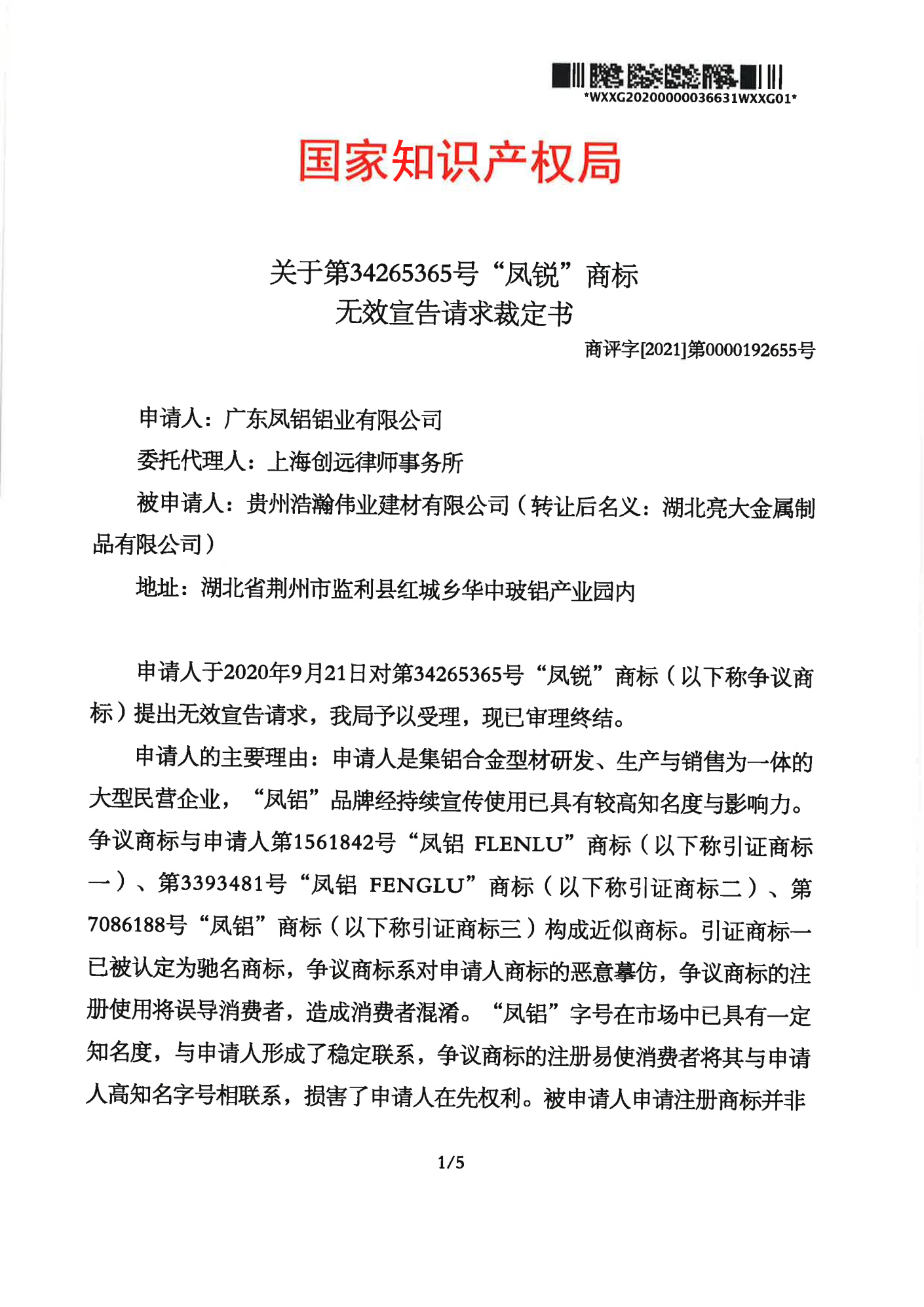 绵阳辉知队 | 国家知识产权局:“凤锐”商标无效